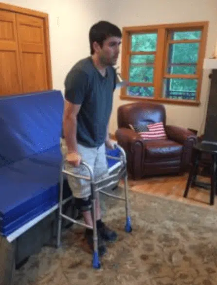 David is now three weeks into his outpatient therapy at Project walk. He is enjoying being pushed in his training again and is seeing positive progress with his weekly sessions. David has recently kicked up his therapy by working out at a friends house two times a week and using his standing frame weekly that he was gifted. The standing frame is important to David’s overall health in so many ways; it helps him stand and bear weight which helps with digestion and circulation.