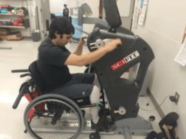 Update from David… I’m having great progress with my recovery so far. I am now able to crawl backwards unassisted and am now working on crawling forward but haven’t quite got it, yet. I reached a milestone was a couple weeks ago, I was able to pedal a spin bike for a little over a minute.
