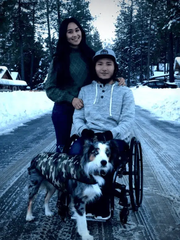 At home Kai has been using his new easy stand standing frame everyday that Road 2 Recovery was able to grant him. He really enjoys standing and being at the same height as his family and friends. Earlier this month Kai’s girlfriend made the move from Hawaii to be with him. He says it’s so nice to have her here and she has been such a great help and supporter. They just recently added a new member to the Mukai family, a beautiful dog named Koa. This pup is keeping them on their toes for sure.