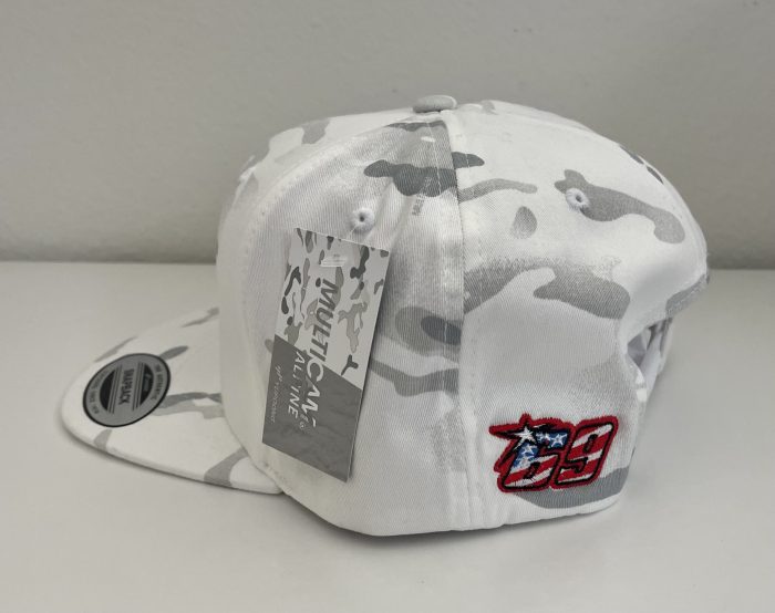 Hat Details: FLEXFIT 110 MULTI-CAM CAMOUFLAGE SNAPBACK HATS. The iconic Nicky Hayden “69” logo on the front.