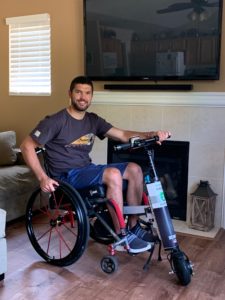 Leighton Lillie- “Thank you to R2R for the sweet Scout. This thing is a game-changer. For me, one of the most important things is to protect the wear and tear on my shoulders. I’ve tried other electric chairs and stuff but transferring from one chair to another is a big pain. This thing attaches to my regular chair in seconds and I’m cruising”.