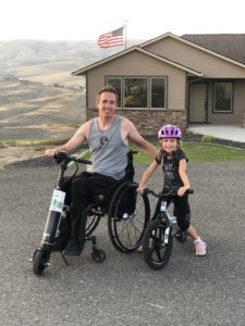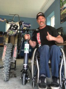 Sam Willoughby- “If you have seen me at a BMX track in the last 12 months you know how much of a life saver these scooter attachments are for me. R2R never ceases to amaze us, we are so thankful for their ongoing support. Mike Young delivered me this new light weight scooter attachment last week. Not only has I️t made travel easier, but having the freedom to walk my dog in our hilly neighborhood and get around the rough bmx track surroundings to coach my riders are freedoms you take for granted until you lose them. Thank you to all the wonderful people who support Road 2 Recovery”.